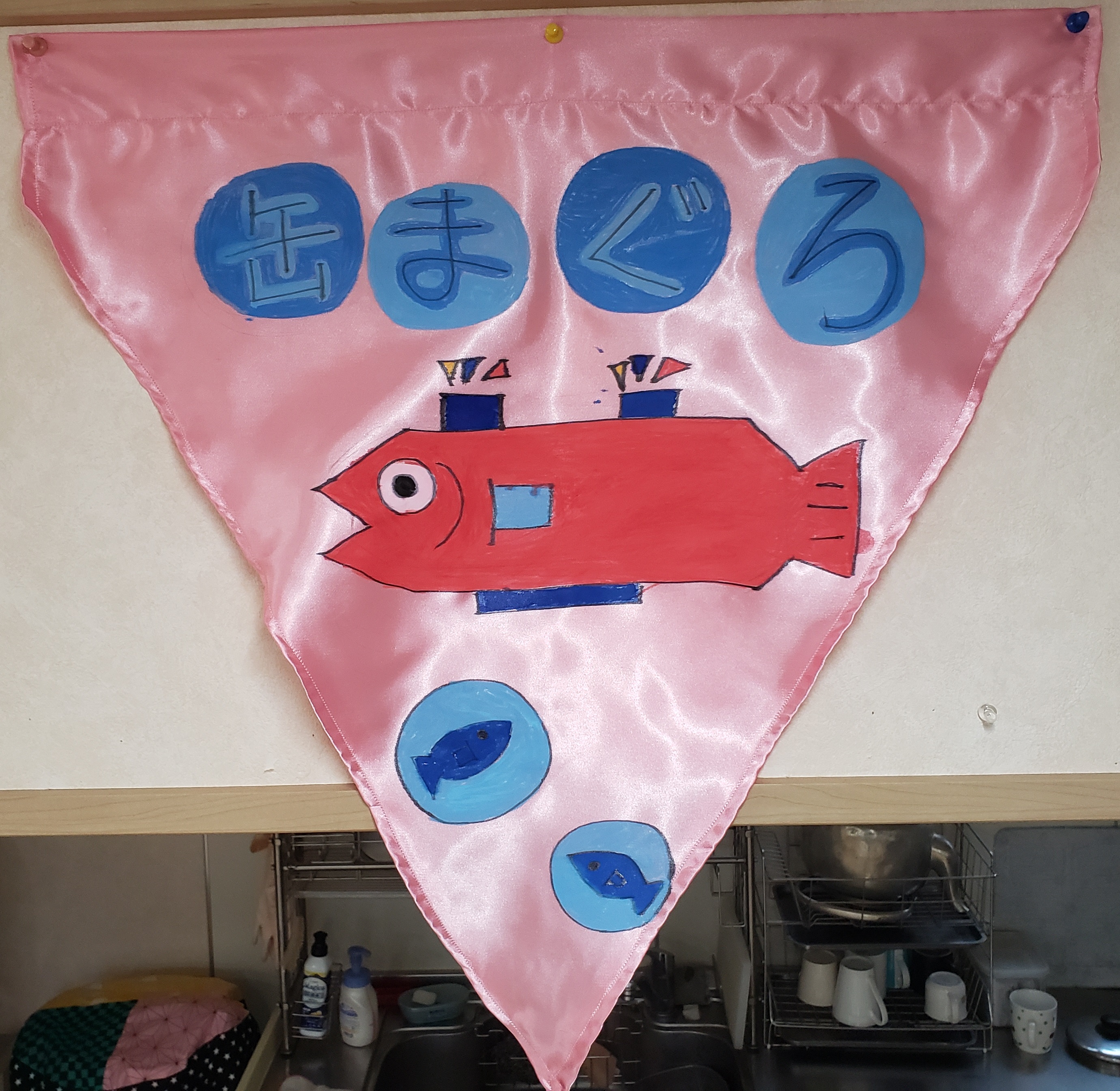 旗の色がカラフルなせいか、部屋の中が明るくなりました♬