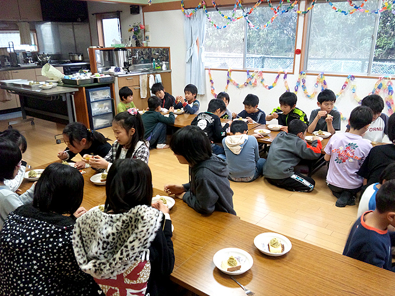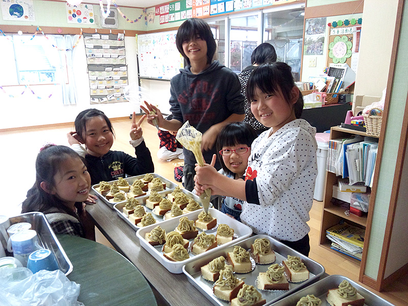 おやつは高学年の女の子が中心となり、みんなで作ります。ロールケーキやクッキーなどおいしいものばかり。自分たちで作ったおやつは格別です!