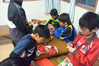 そして、一番盛り上がるのがプレゼント交換。それぞれがよーく考え、悩んで決めたプレゼントはどれが当たってもうれしいもの。ビンゴやくじ引きなどで、どのプレゼントがもらえるのかが決まります。プレゼントの包みを開けるときのわくわくした表情がとってもかわいいですね。