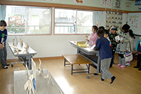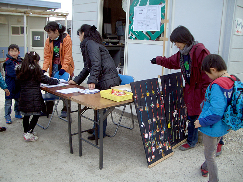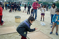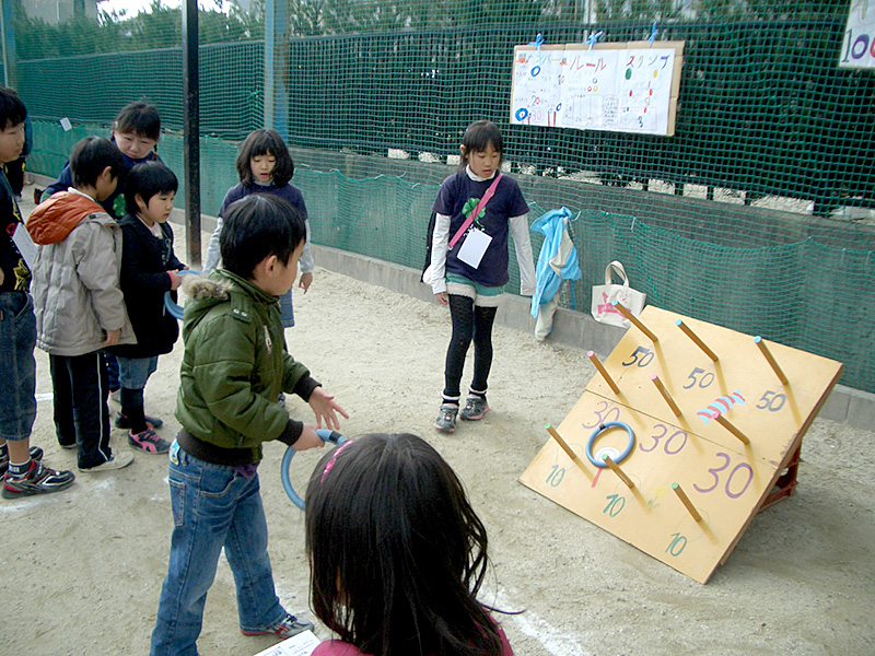 当日、各ゲームは高学年を中心に、学童の子どもたちが交代で担当し、父母がそのお手伝いをします。参加してくれた子どもたちに楽しんでもらおうと、みんな頑張ります。低学年の子どもたちも高学年のお兄さん、お姉さんに教えてもらいながら良く働きます。お家でもそのくらいお手伝いしてくれるといいのに…?